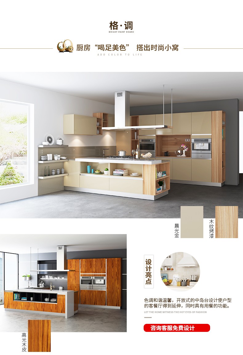 | 商品名称 | ソフィアの司米の全体の炊事場の戸棚は注文してカードのドイツのシリーズの開放式の台所のピアノの漆の板材の戸棚の台所の戸棚の石英の石の台の台所の戸棚を注文して簡単に装飾して誠意の金を注文します。 |