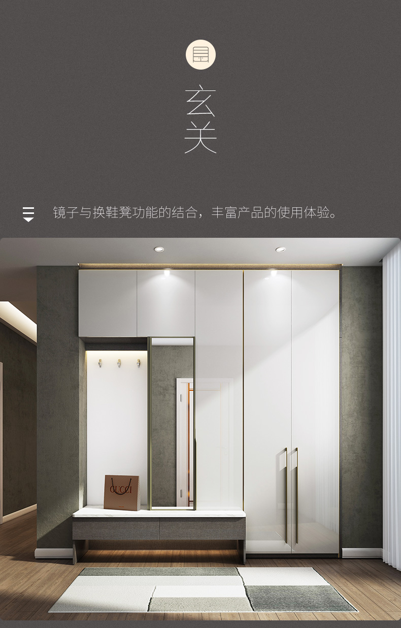 | 商品名称 | ソフィア全屋カスタム箪笥高光焼漆白の境シリーズ寝室軽奢な服と帽子の間のガラスの扉の客間は玄関の棚の下駄箱の棚を置いて式の酒箪笥のベランダの物置を放して金を注文します。 |
